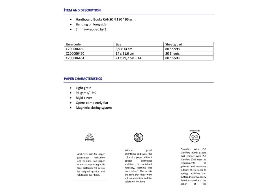 Sketchbook con carta a grana leggera con rilegatura molto robusta per garantire una completa apertura. Carta Crob'Art bianco naturale senza acidi e senza azzurranti ottici. Resistente alle ripetute cancellature. Apertura completamente piatta. Elegante chiusura magnetica. Copertina robusta con angoli arrotondati. Album da 80 fogli, grammatura 96 g/mq.