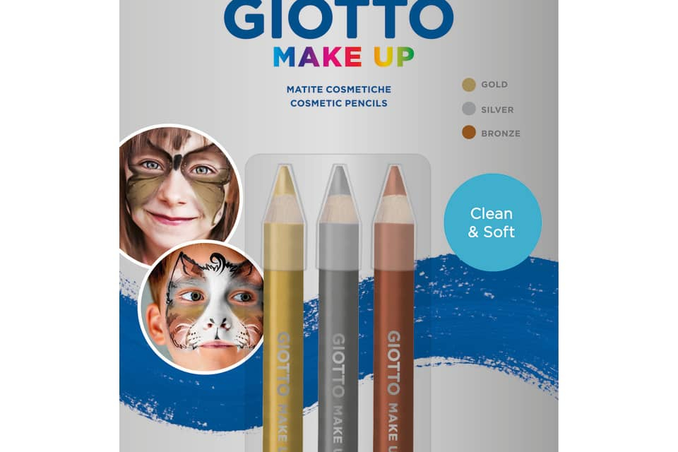 Tris di matite cosmetiche metalliche con nuova formulazione più morbida e facilmente lavabile dalla pelle. Realizzate in legno cedro certificato PEFC con mina gigante Ø 6,25 mm. Nome del colore sull...