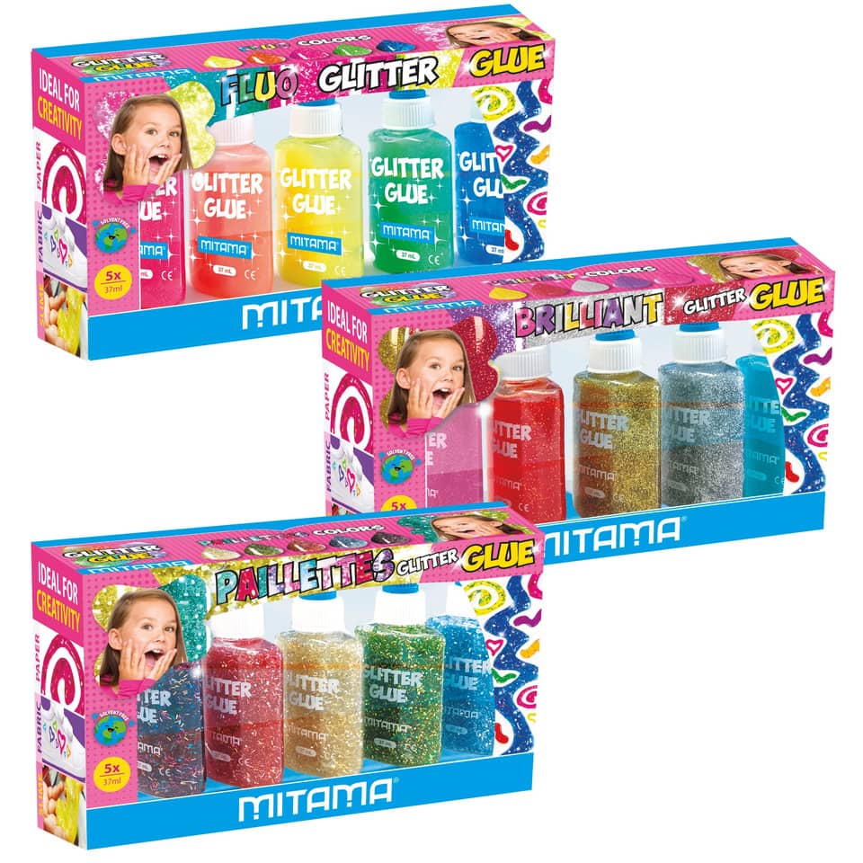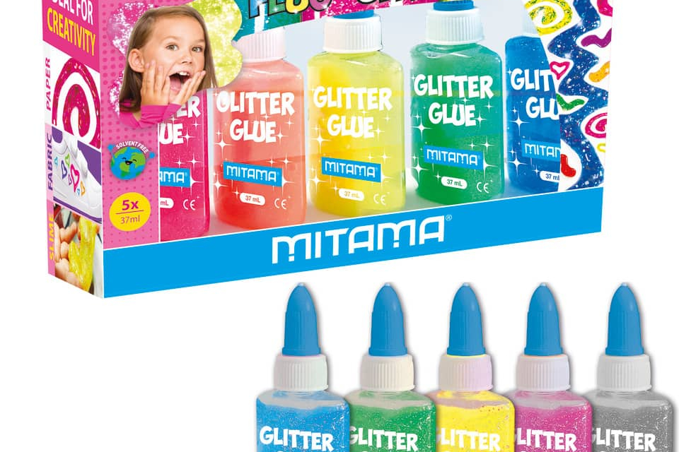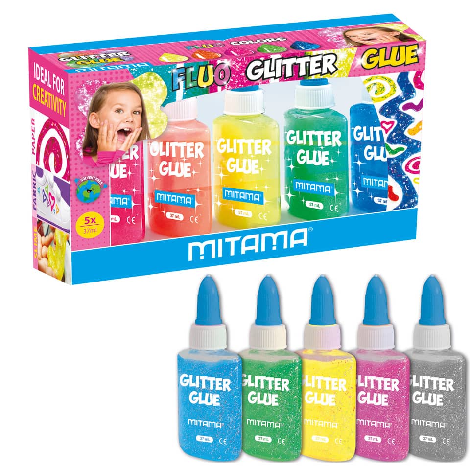 Colla Glitter Neon con effetto a rilievo per decorare ogni superficie. Formato 37,5 ml, la confezione contiene 5 pezzi, colori assortiti Neon. Priva di solventi. Ideale per Slime, lavabile....