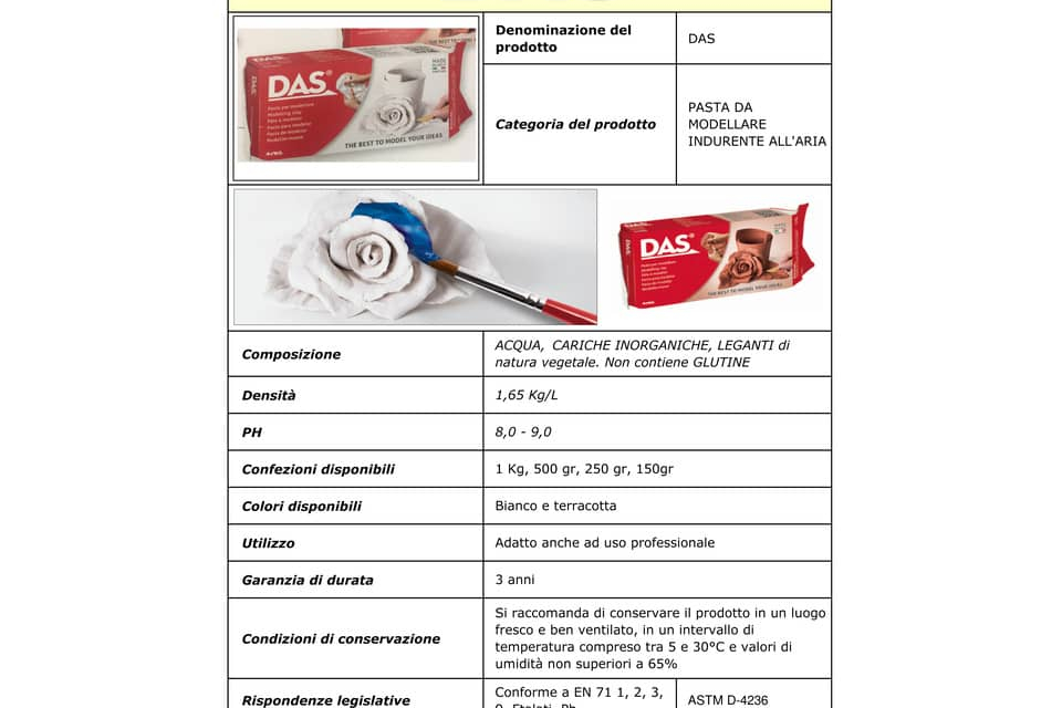 Pasta modellabile DAS TERRACOTTA 1KG. La star delle paste per modellare. Modellare da sempre si dice DAS in tutto il mondo dal 1963, bassorilievo, tuttotondo, mosaico e rivestimento sono solo alcune d...