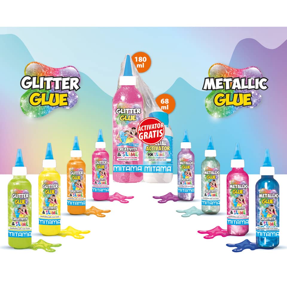 Set Slime&Creativity, composto da 1 colla glitter/metal da 180 ml e 1 attivatore da 68 ml incluso nel prezzo. Slime facilissimo da creare in poche mosse. Lavabile e non tossico. Confezione da 2 pezzi....