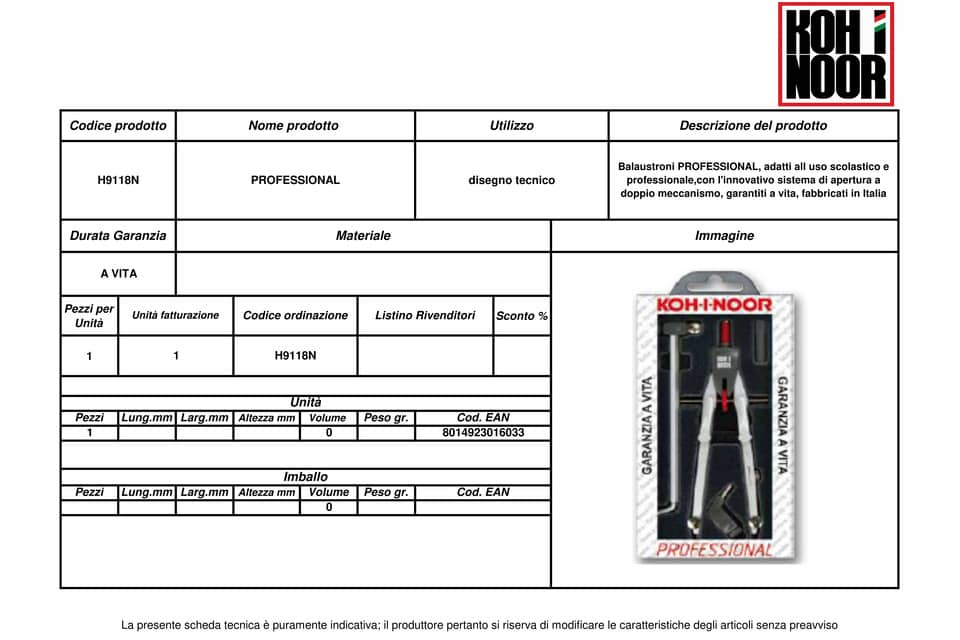 Compassi adatti alla scuola e ad uso professionale. Garantiti a vita, interamente fabbricati in Italia. Balaustrone professionale con aste snodate, allunga e ricambi 170 mm....