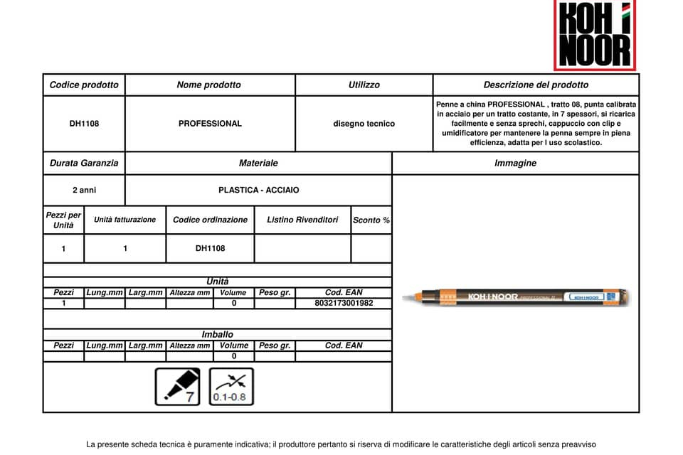 Penna a china KOH-I-NOOR tratto 0,8 mm DH1108