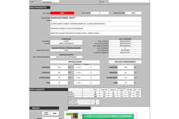 Lettere, numeri e simboli conformi alle norme UNI. Altezza carattere mm 3,5. Materiale flessibile e di elevata resistenza. Adatti per scrivere con matita o penna a china. Cornice bianca....