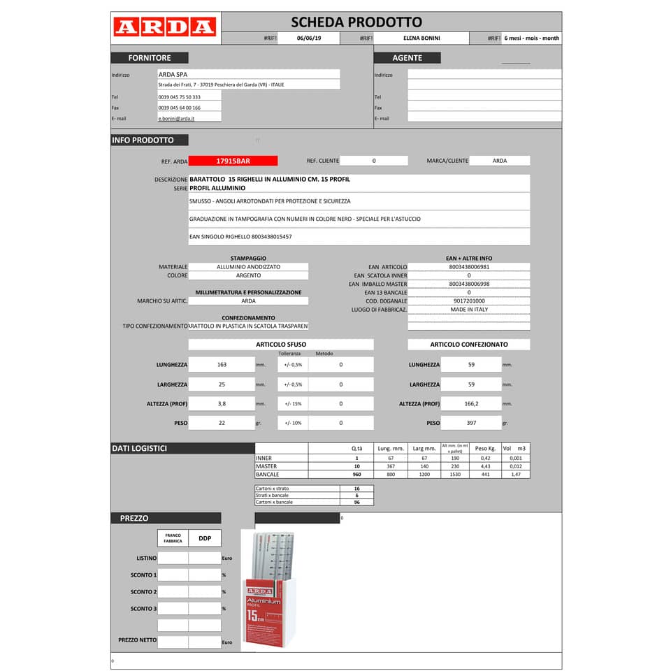 Righello Profil ARDA Profil alluminio anodizzato 15 cm Conf. 15 pezzi - 17915BAR