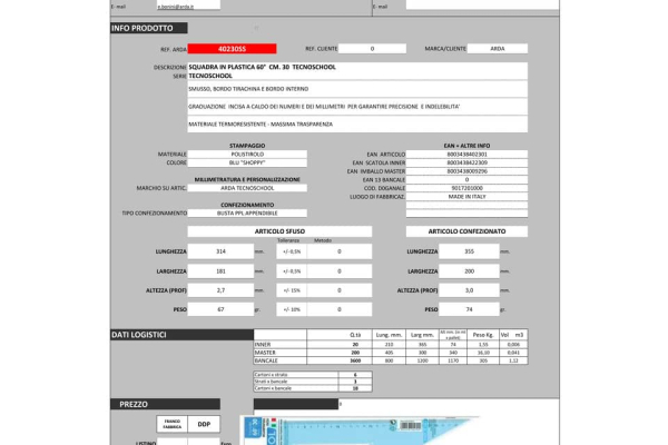 Con smusso, bordo tirachina e bordo interno. Graduazione incisa a caldo dei numeri e dei millimetri per garantire precisione e indelebilità. Materiale termoresistente e massima trasparenza....
