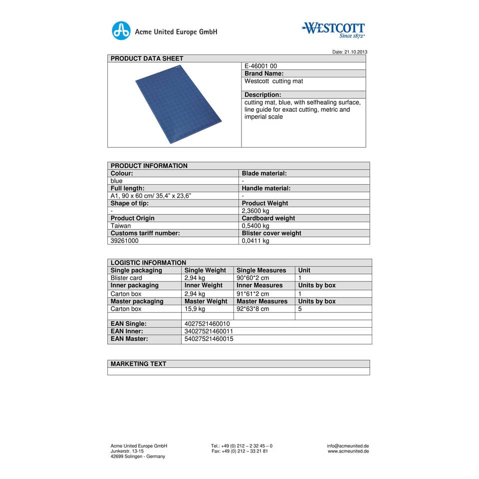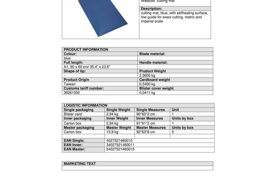 La stuoia da taglio di WESTCOTT® è dotata di una superficie rigenerativa, vale a dire che la linea di taglio si richiude e diventa invisibile. I nucleo della stuoia è resistente al taglio. Inoltre ...