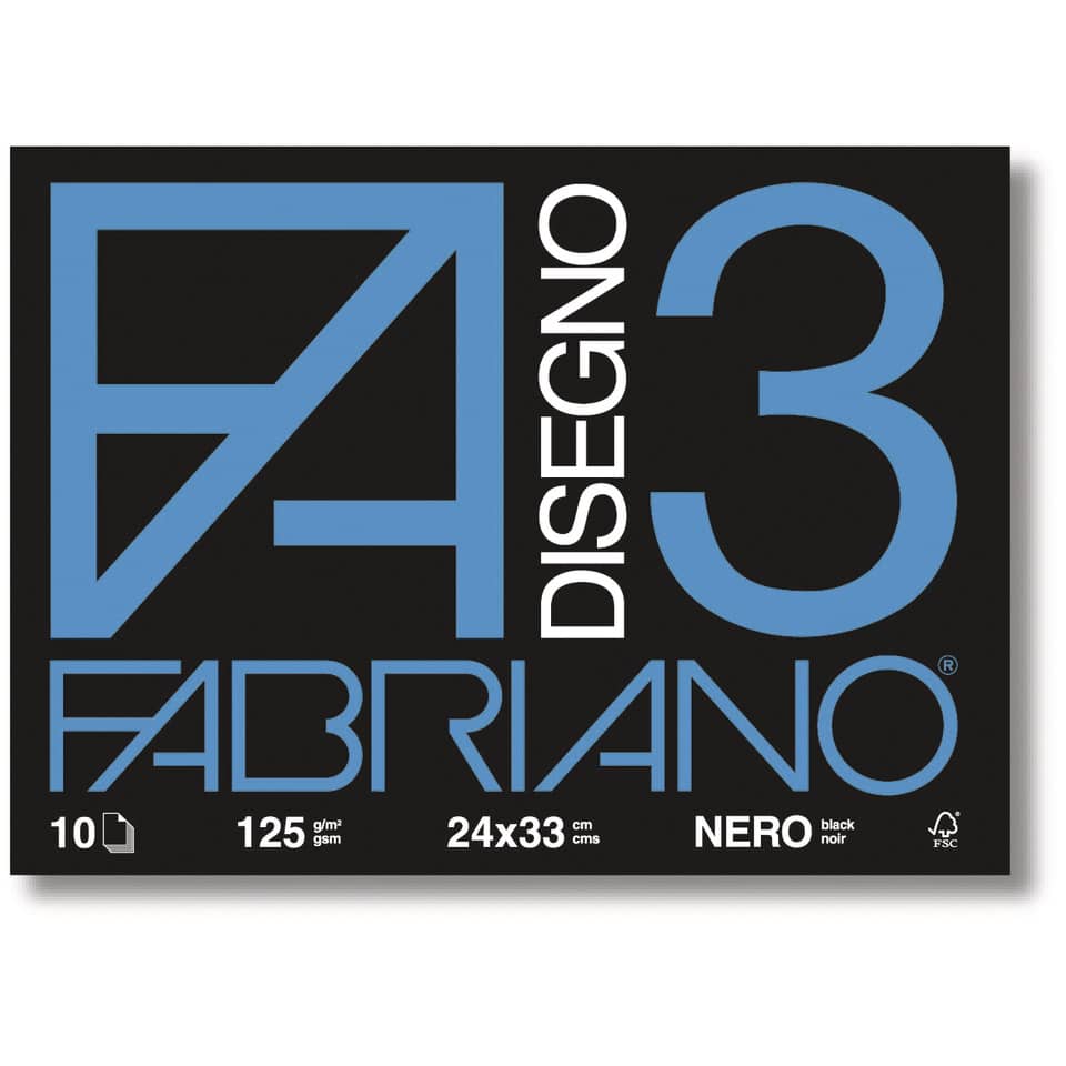 Album Fabriano F3 Nero. La qualità delle materie prime usate e il suo nero profondo, che evidenzia assai bene i colori applicati e presenta una notevole resistenza alla luce, fanno del Fabriano 3 un ...