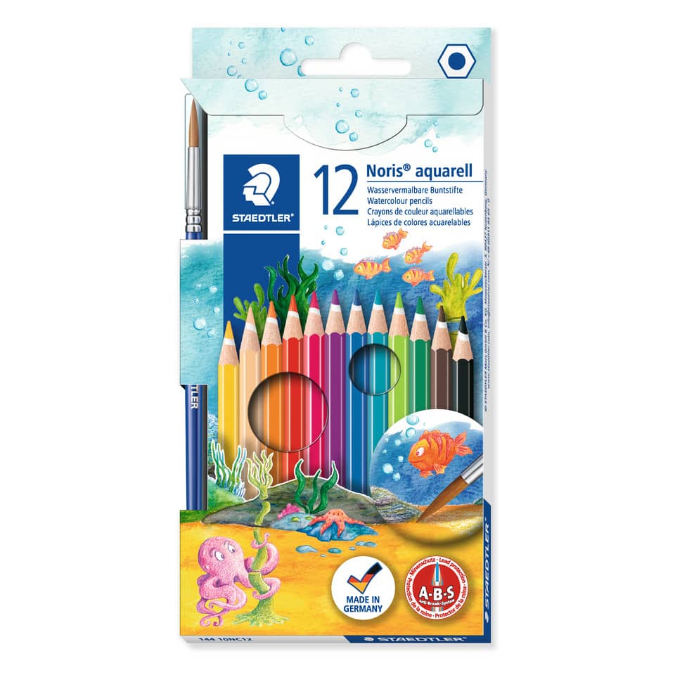 Matite colorate Noris Club® Aquarell, astuccio con 12 matite esagonali acquerellabili, con guaina Anti-Break-Sys2tem - A-B-S.
