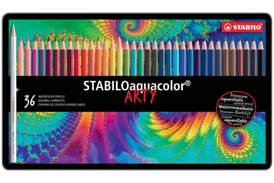 Matite colorate acquerellabili di alta qualità e dal colore molto ricco adatte anche all’uso didattico. Tratto scorrevole. Disponibile in scatola di metallo in confezione da 36 colori assortiti. Co...