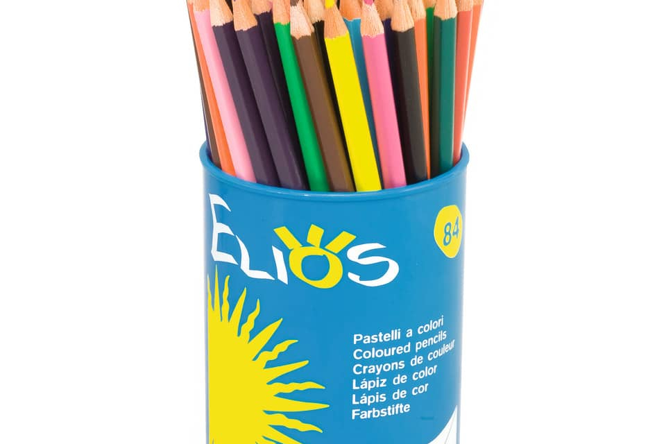 Matite colorate ELIOS in barattolo. Brillanti come il sole. Creare in libertà ha i colori dell'arcobaleno con il pratico Elios! Pastello esagonale verniciato del colore della mina del diametro di 2,8...