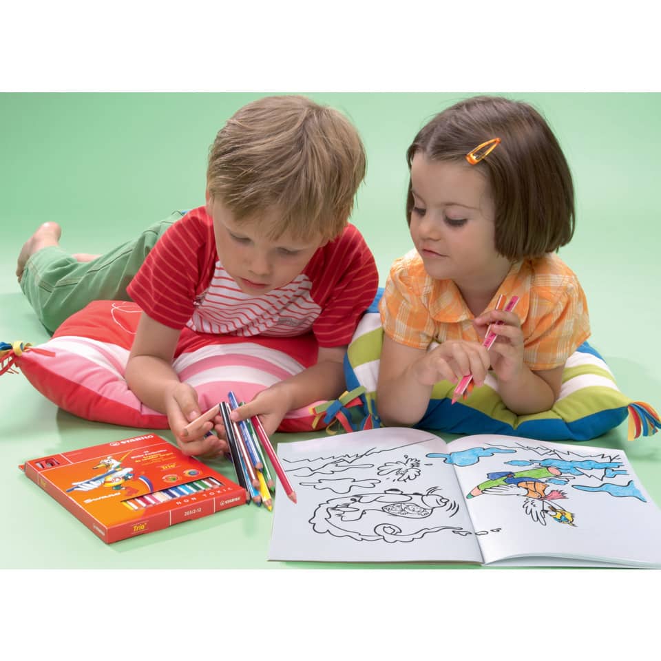 STABILO Trio thick sono matite colorate ergonomiche con fusto grosso, triangolare ed ergonomico per un'impugnatura rilassata. STABILO Trio thick sono studiate appositamente per non affaticare la mano ...