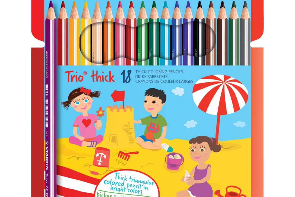 STABILO Trio thick sono matite colorate ergonomiche con fusto grosso, triangolare ed ergonomico per un'impugnatura rilassata. STABILO Trio thick sono studiate appositamente per non affaticare la mano ...