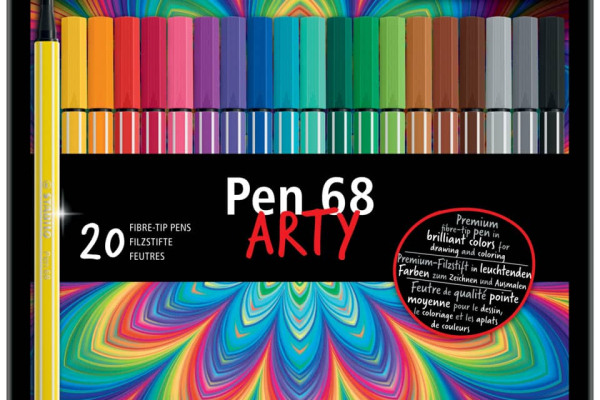 Pennarello Pen 68 con inchiostro a base d'acqua, resiste senza cappuccio fino a 24 ore, cappuccio ventilato. Confezione colori assortiti. Scatola da 40 pz.... Dettagli »