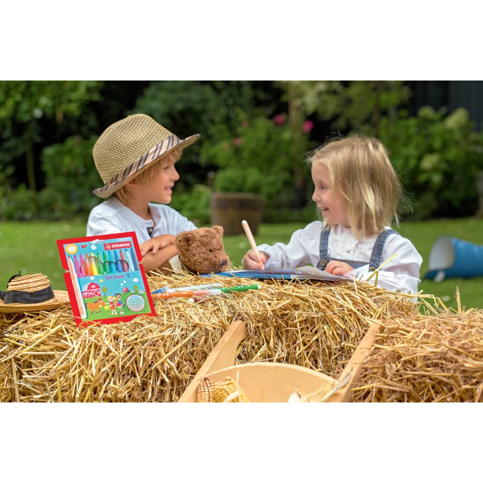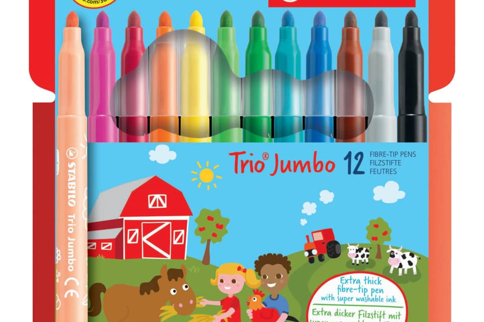 Pennarelli Stabilo Trio Jumbo con punta XL super resistente da 3 mm adatta alla pressione dei bambini. Fusto con impugnatura triangolare ed ergonomica per una maggiore comodità di scrittura. Inchiost...