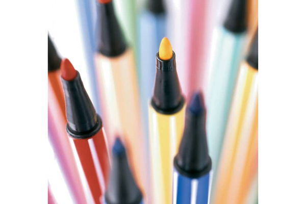 Pennarelli con punta in fibra. Resistono fino a 24 ore senza il cappuccio. Inchiostro a base d’acqua, inodore. Parzialmente acquarellabile. Cappuccio ventilato anti soffocamento. Tratto 1 mm....