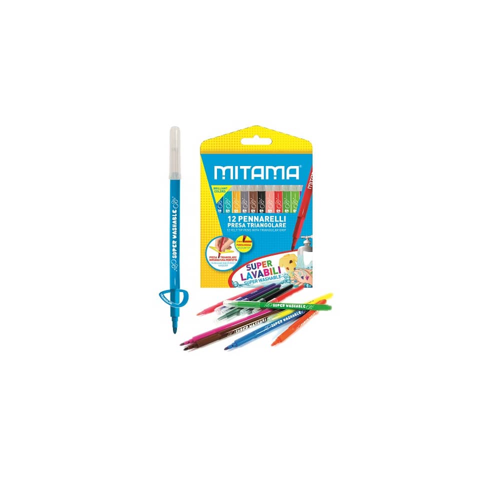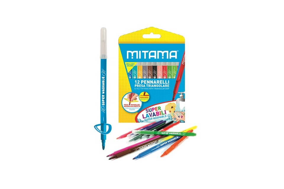 Pennarelli Super Lavabili con presa triangolare, che facilita la corretta impugnatura del pennarello garantendo il massimo confort. Fusto tondo e cappuccio trasparente antisoffocamento con punta arrot...