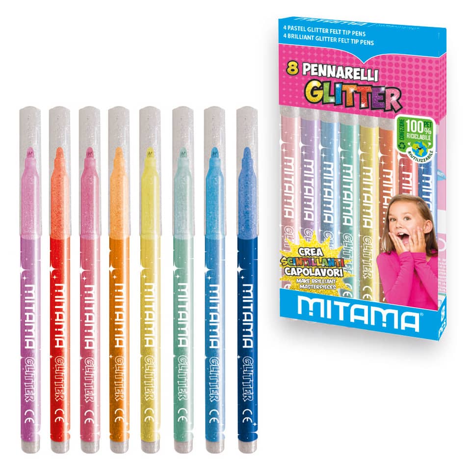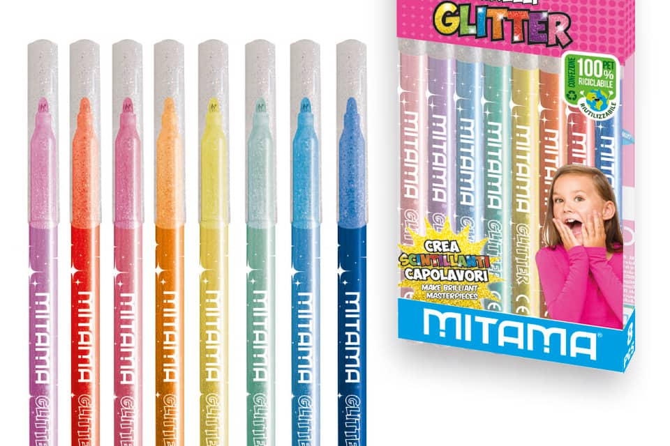 Pennarelli Glitter con presa triangolare, per una corretta impugnatura del pennarello ed il massimo confort. Colori super brillanti per creare disegni scintillanti. Fusto tondo e cappuccio trasparente...