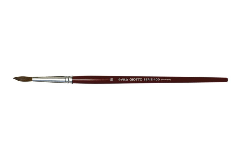 Pennelli Giotto Serie 400/6. Di dodici misure, da 0 per tratti sottilissimi a 14 per linee spesse, i pennelli 400 a punta tonda sono in pelo di pony con manico verniciato. Ideali per acquarello e temp...