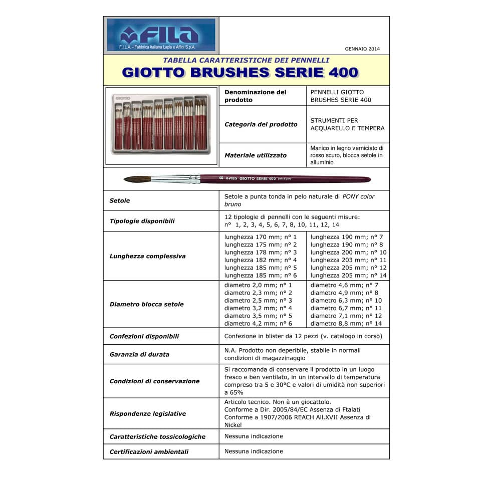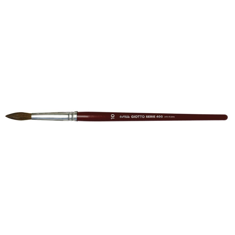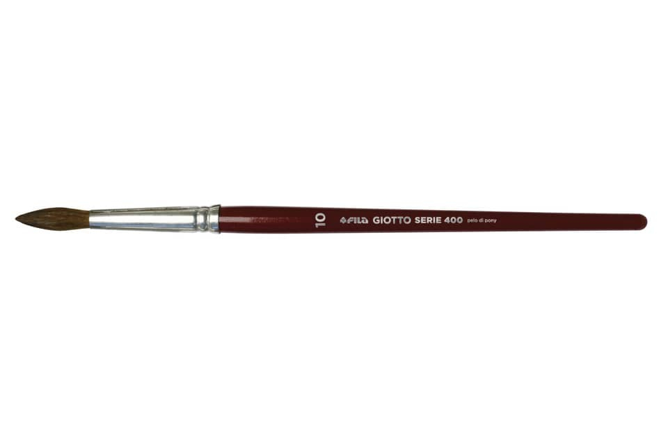 Pennelli Giotto Serie 400/10. Di dodici misure, da 0 per tratti sottilissimi a 14 per linee spesse, i pennelli 400 a punta tonda sono in pelo di pony con manico verniciato. Ideali per acquarello e tem...