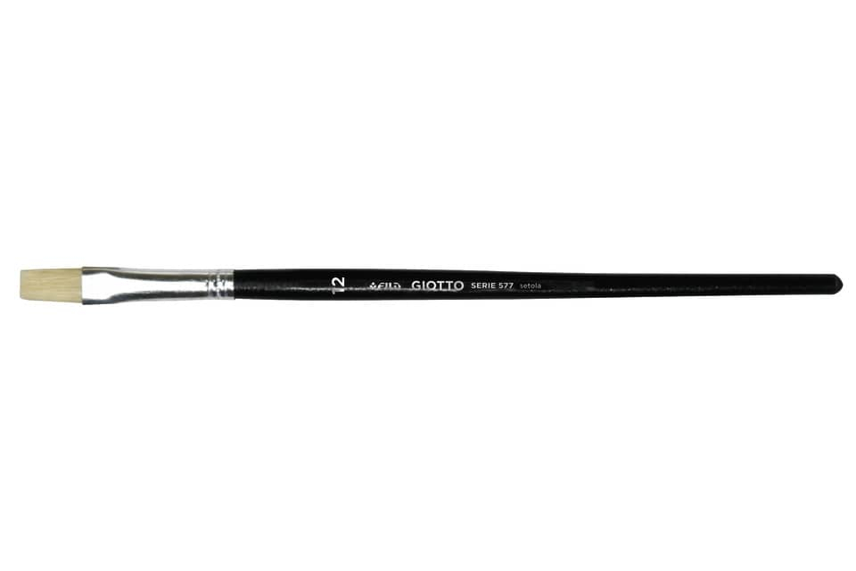 Pennelli Giotto Serie 577/12. Di tutte le misure, da 0 per tratti sottilissimi a 16 per grandi superfici, i pennelli a punta piatta sono in setola con manico verniciato nero. Ideali per pittura a olio...