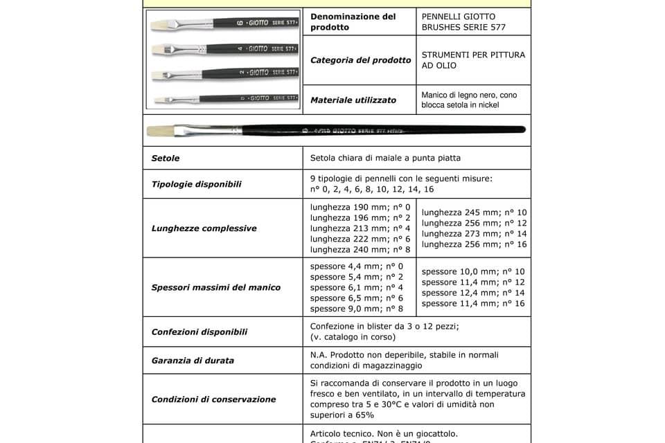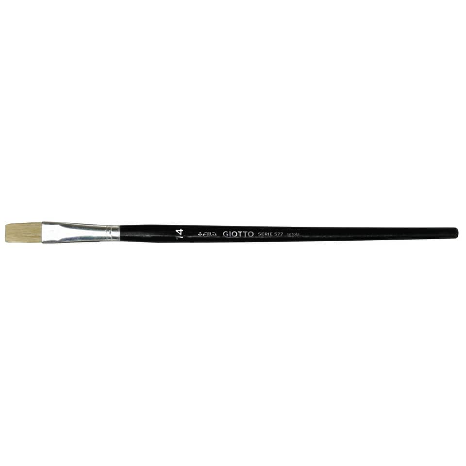Pennelli Giotto Serie 577/14. Di tutte le misure, da 0 per tratti sottilissimi a 16 per grandi superfici, i pennelli a punta piatta sono in setola con manico verniciato nero. Ideali per pittura a olio...