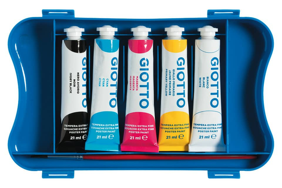 Tempere Giotto 21ml. Tempera ultrafine concentrata, in tubetto di alluminio con tappo a vite in plastica. Ideale per pittura, particolarmente ricca di pigmenti è densa e coprente Diluibile con acqua ...