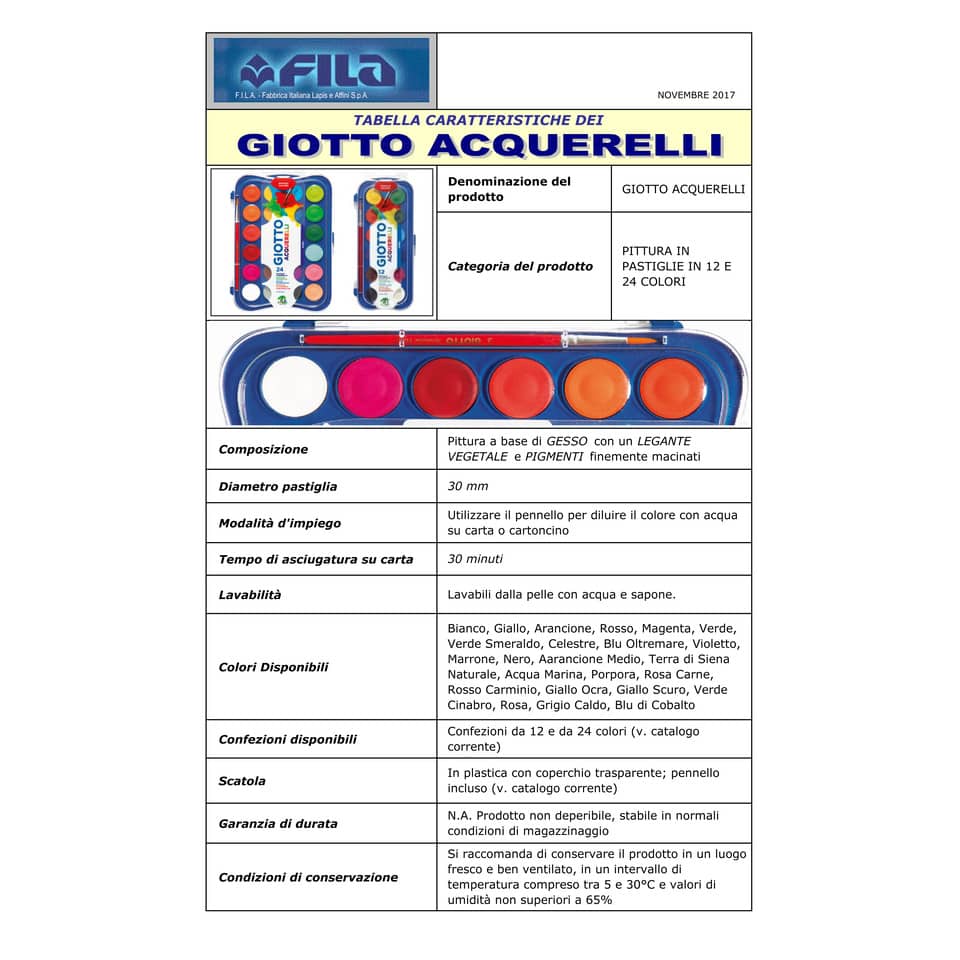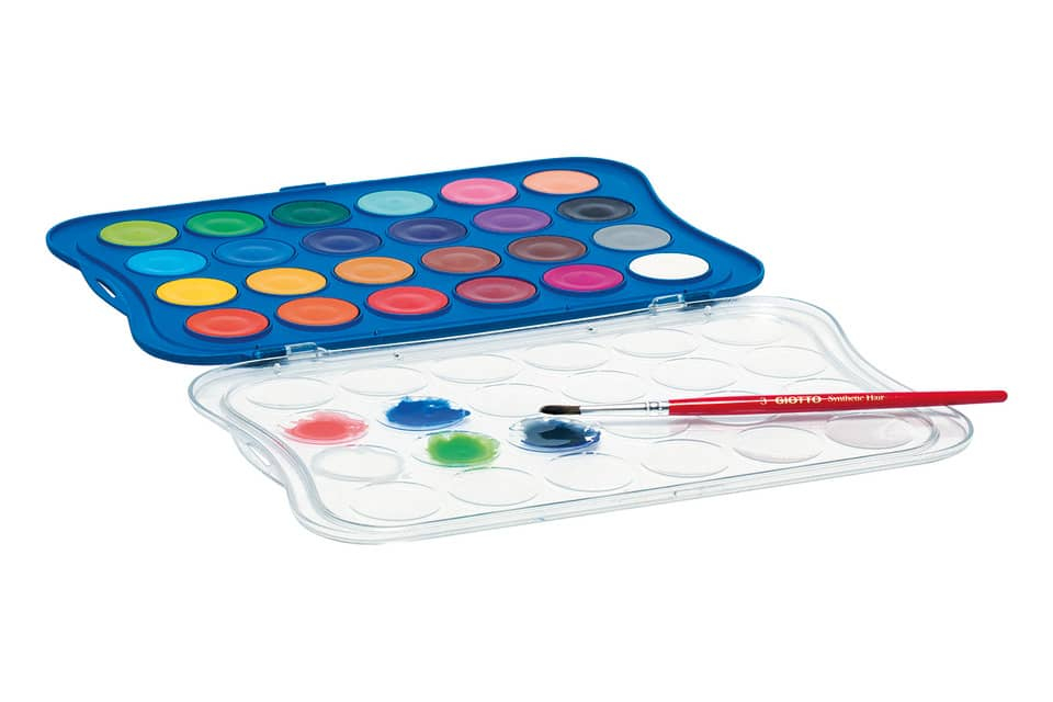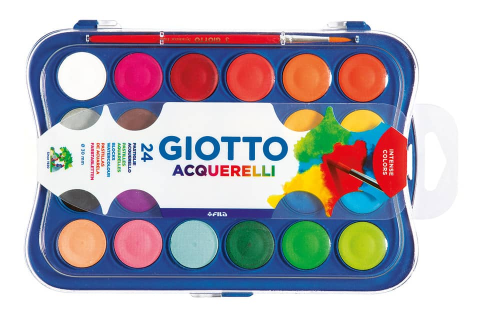 Acquerelli in pastiglie Giotto 30mm. Nuovo design più funzionale che ne facilita l'uso. Colori più luminosi, intensi e coprenti grazie alla nuova formulazione. La pittura può essere diluita con acq...
