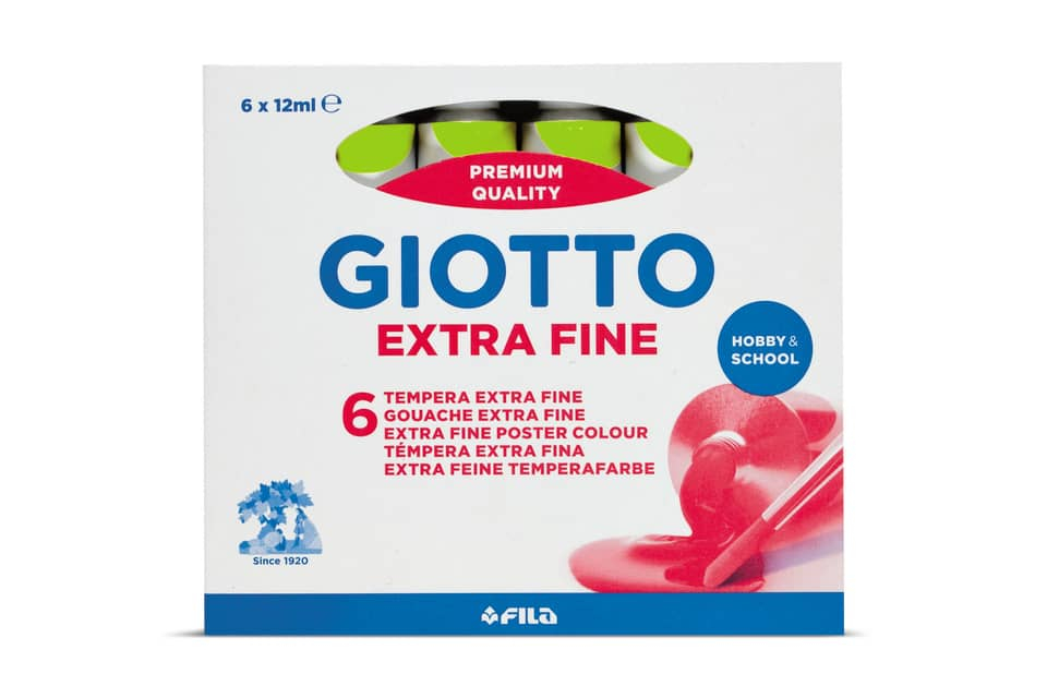 Tempere Giotto 12ml. Prodotta con pigmenti di qualità superiore, che conferiscono ai colori luminosità ed elevato potere coprente, la tempera ultrafine Giotto è ideale per lavori di illustrazione e per chi in pittura non conosce limiti... Tanto ci sono ben 24 colori! Colore: verde cina.