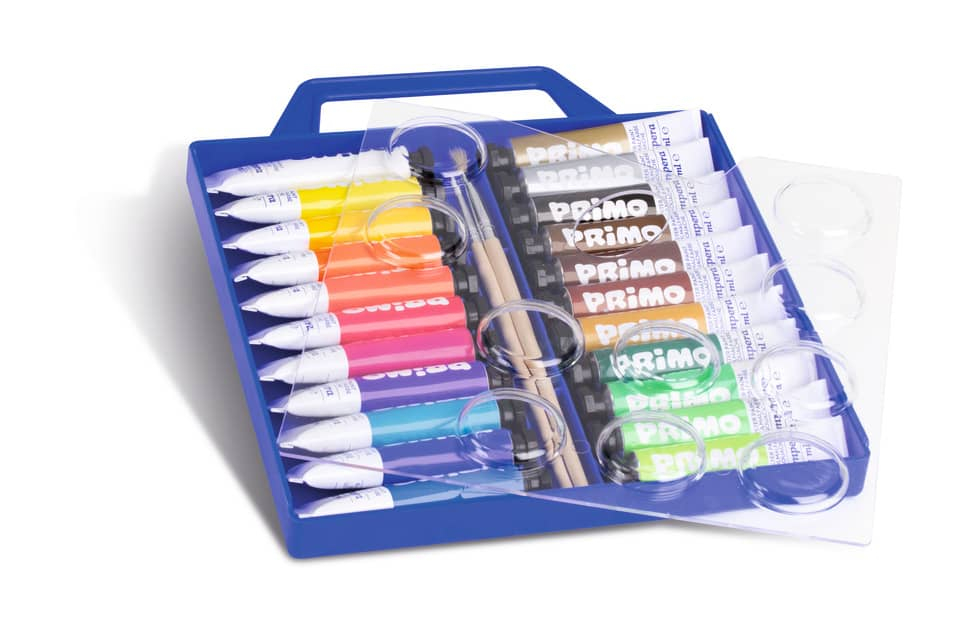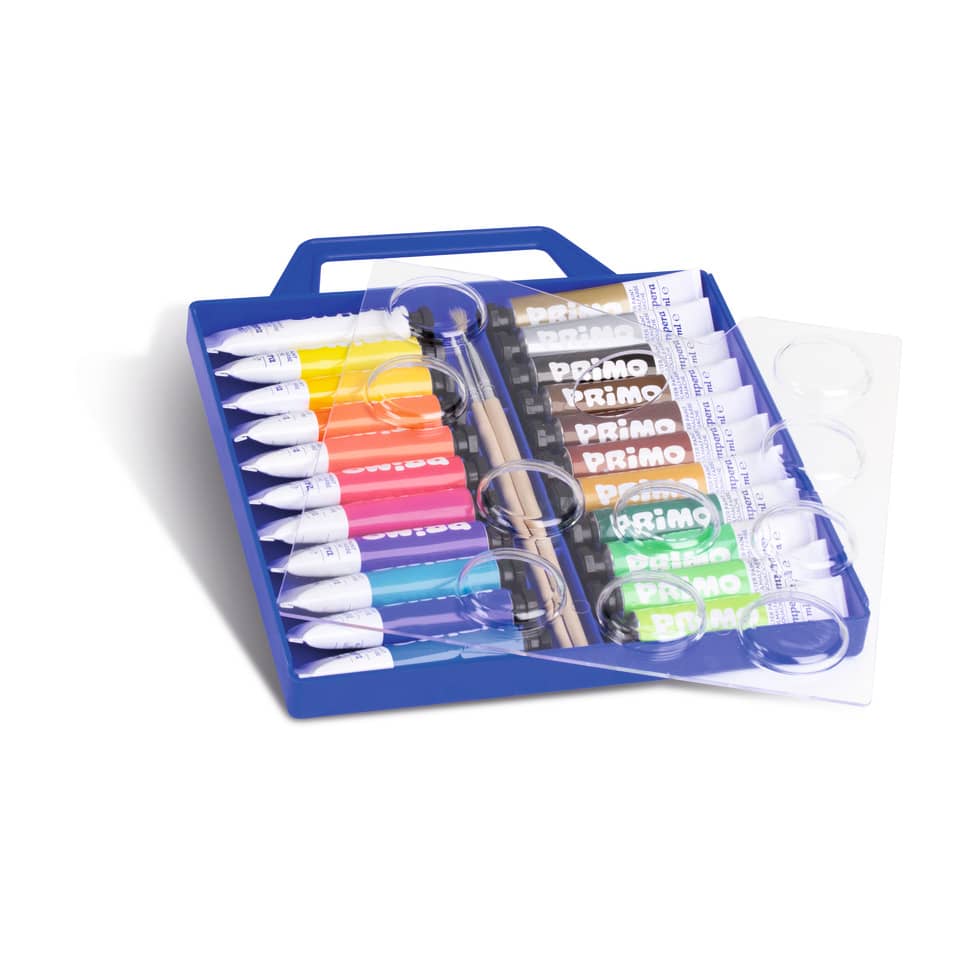 Tempera in tubetto di alluminio, in comoda valigetta con coperchio tavolozza, in 22 colori, con 2 pennelli. Questi colori a tempera concentrati di qualità fine permettono facile stesura e buona copre...