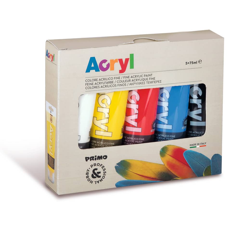 Colore acrilico fine Primo H&P 75 ml - Conf. 5 tubetti colori primari assortiti 421TATM5