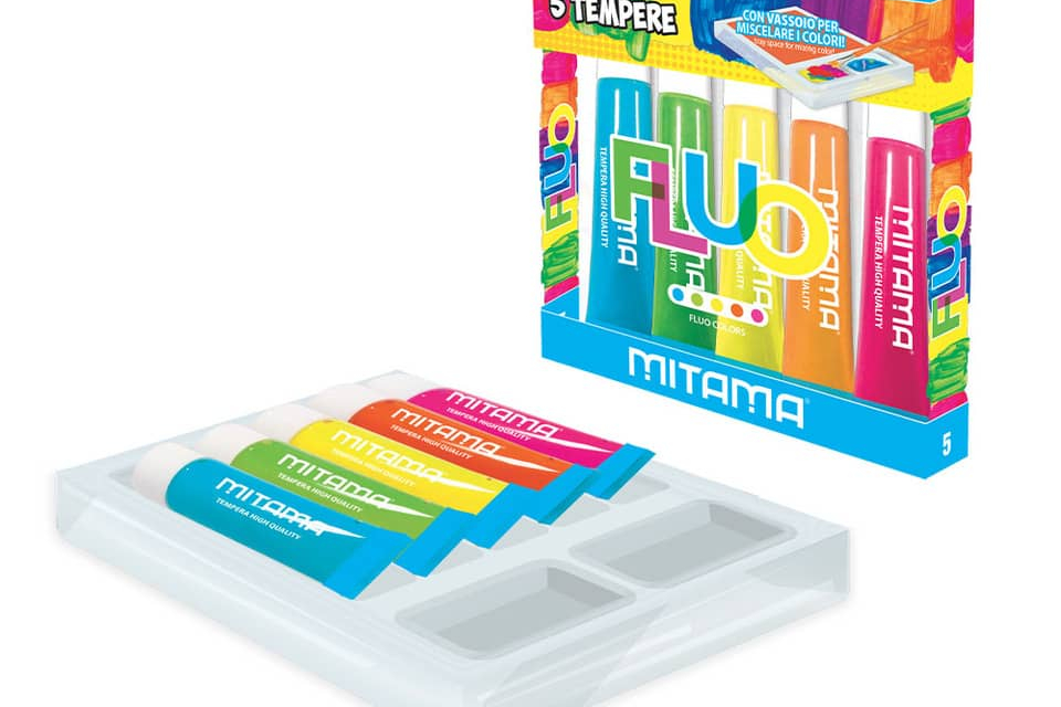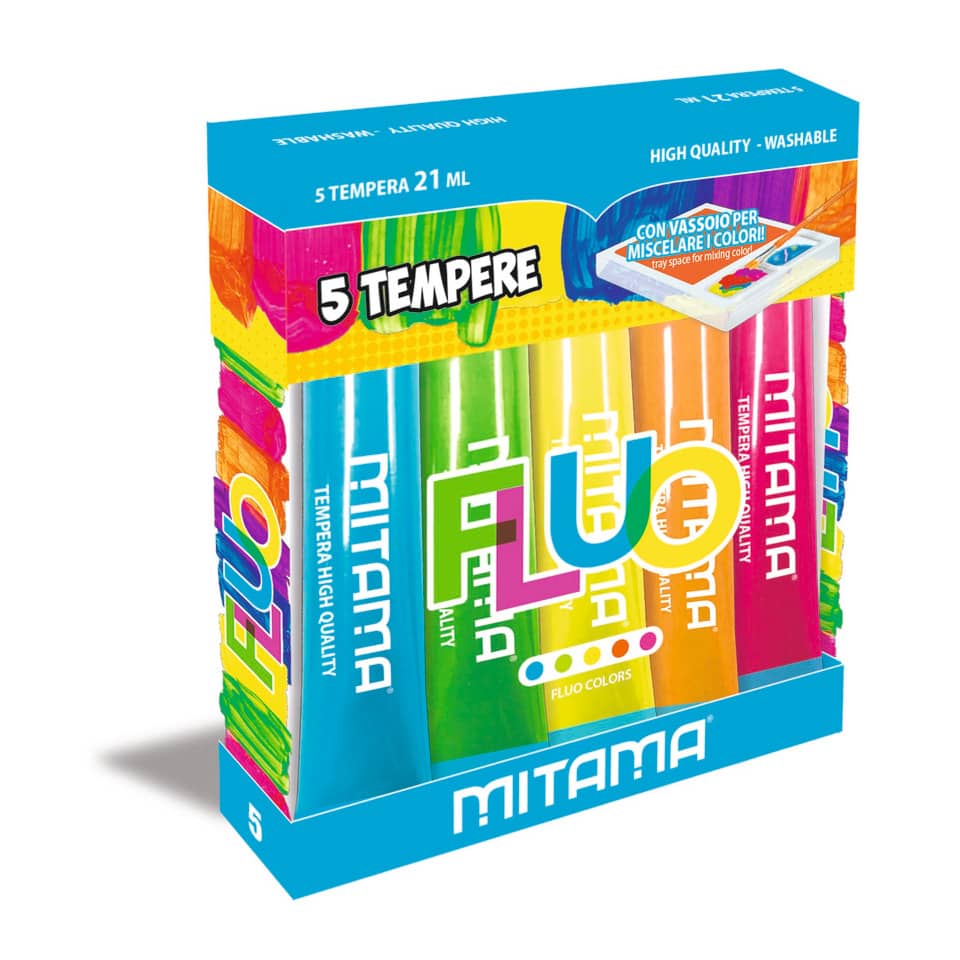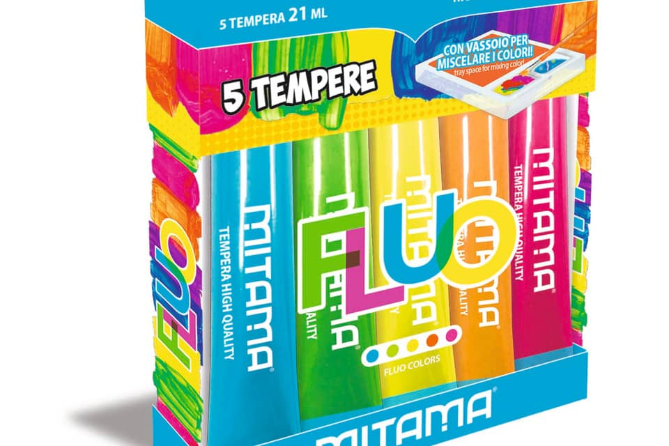 Colori a tempera lavabili di alta qualità: più coprenti, più corposi, più scorrevoli. La confezione contiene 5 colori FLUO da 21 ml, 2 pennelli ed 1 guida per creare tutte le combinazioni di color...