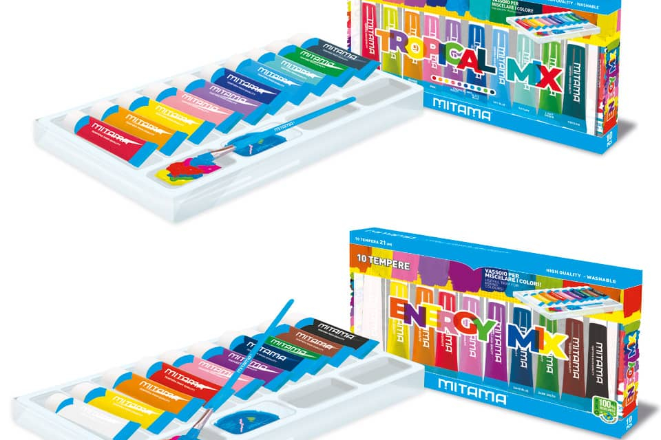 Colori a tempera lavabili di alta qualità: più coprenti, più corposi, più scorrevoli. La confezione contiene 10 colori da 21 ml, 2 pennelli ed 1 guida per creare tutte le combinazioni di colore po...