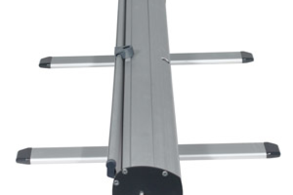 L'asta ibrida è veloce e facile da assemblare e può essere fissata a diverse altezze per adattarsi ad ogni tipo di grafica.